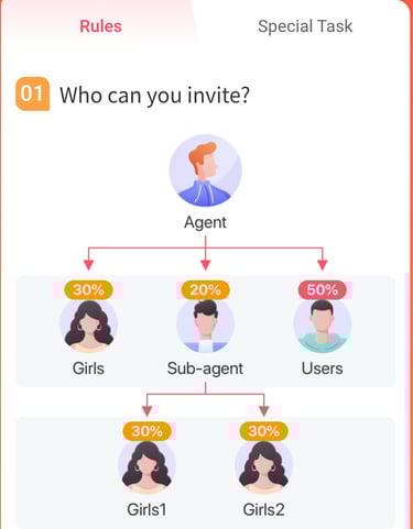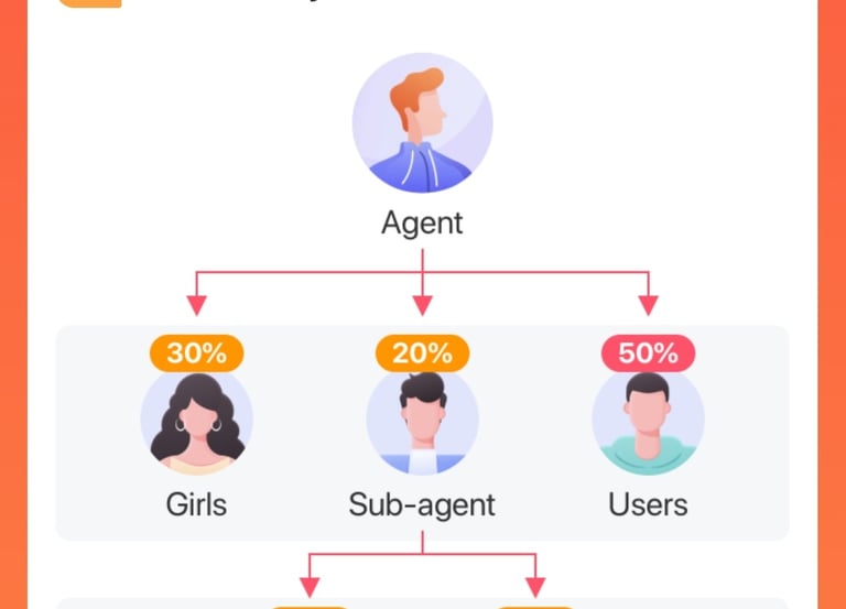 Agency hosts earn 30% commission, while sub-agents receive 20%, incentivizing growth and engagement.