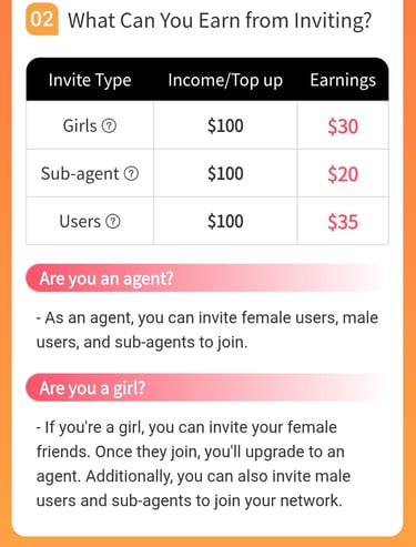 Each host invite rewards you $1, plus commissions from agency and sub-agent activities on the platform.